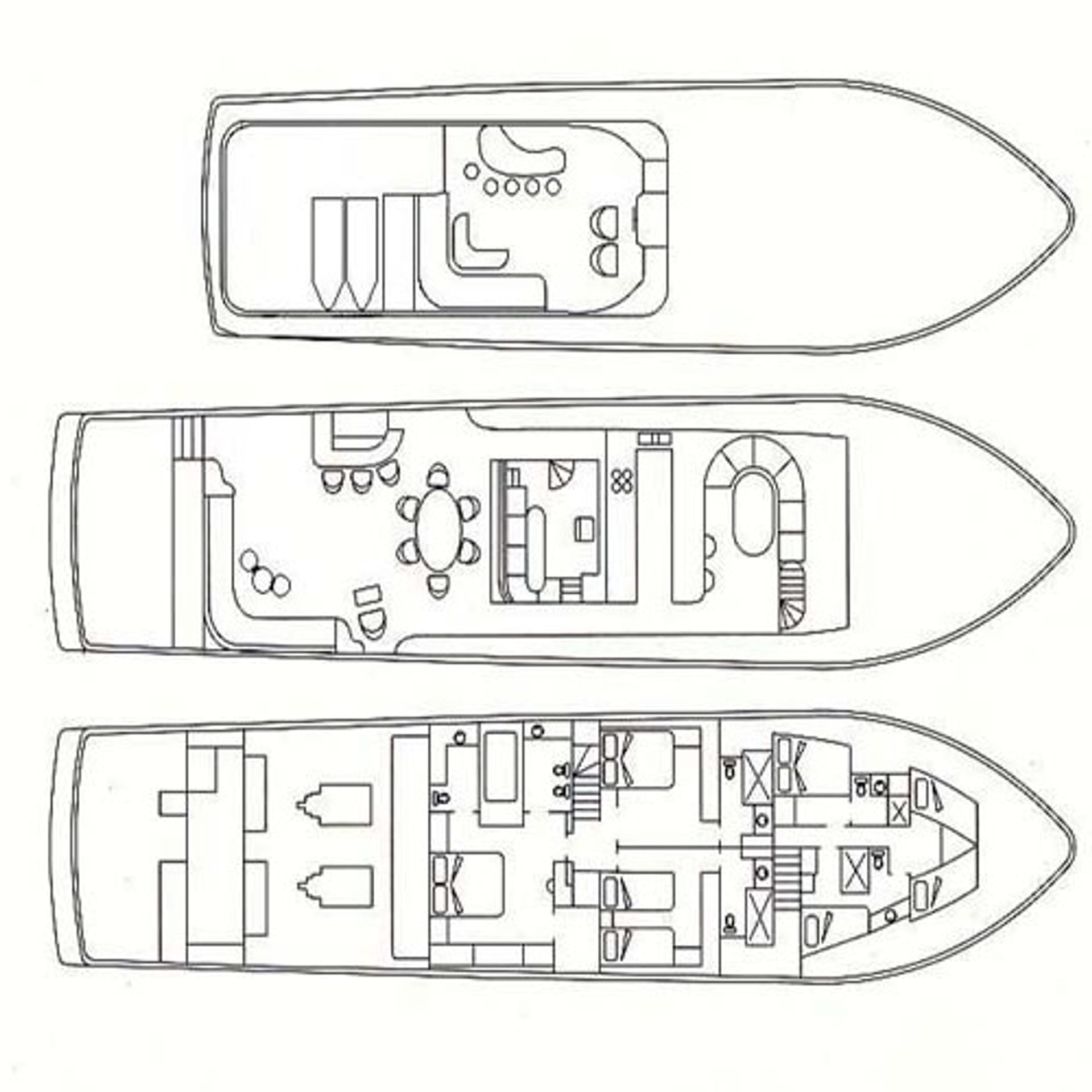 Offers plenty of areas for sunbathing on the aft deck, in the bow and the upper deck. On the aft deck there are plenty of seating options for both lounging and dining.