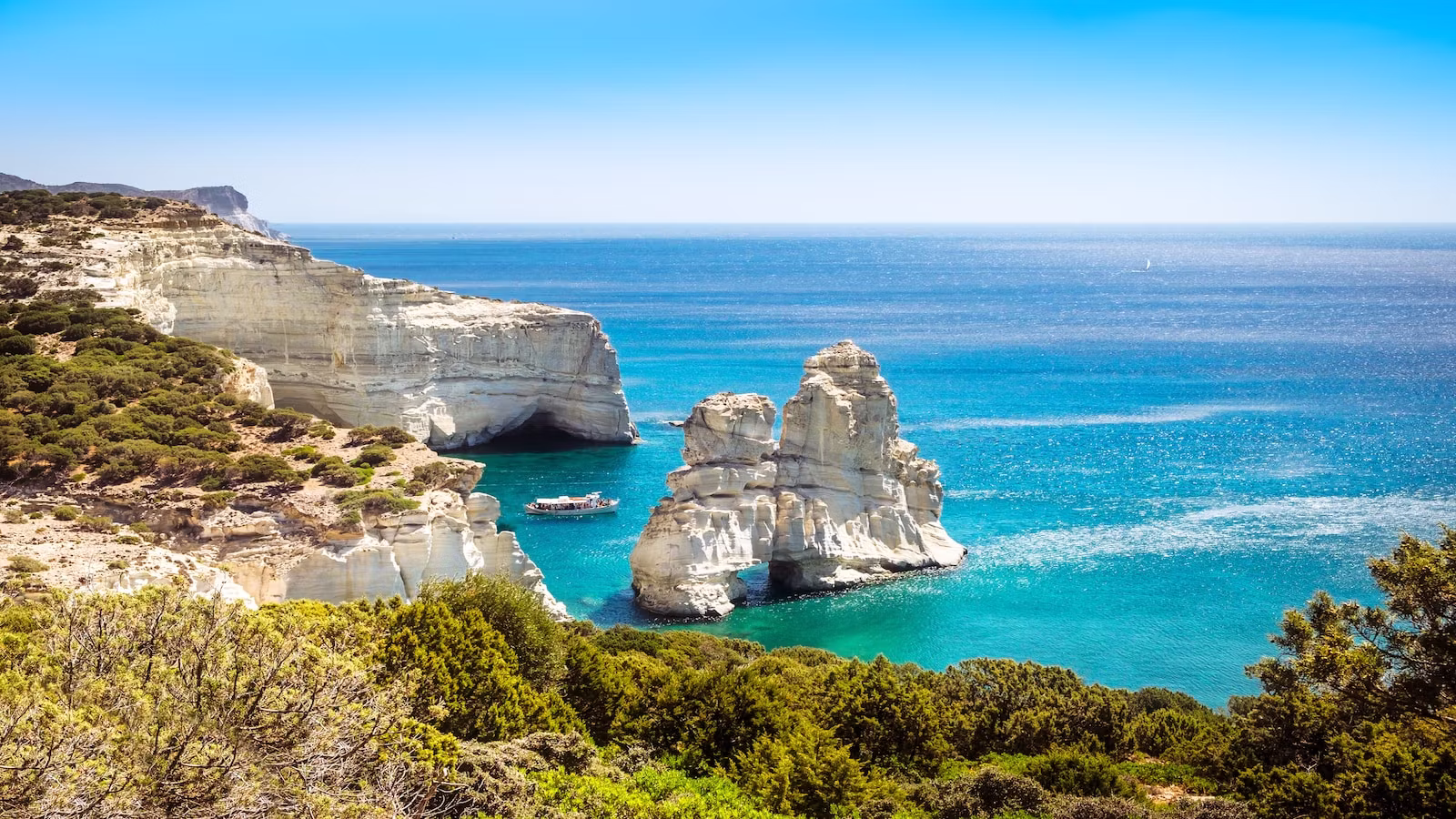 Milos is a volcanic island with unique geological and rock formations and stunning beaches with turquoise waters. It has one of the best harbors in the Medietreranean sea, which was formed when the sea broke into the volcano’s crater on the island's northwest side. Kleftiko and Sarakiniko are the island’s most famous beaches. Kleftiko used to be an old pirate hideout and can only be reached by boat.
