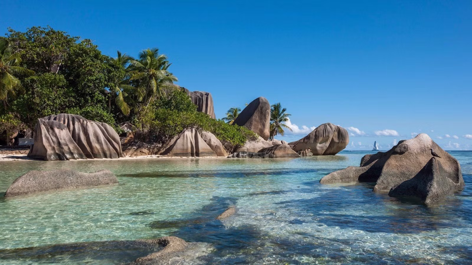 Set sail for the Ile Cocos Marine Park where you’ll find world-class snorkeling and diving, the sea truly brimming with life. After lunch makes your way to Felicité, a heavily forested gem of an island with a Six Senses resort that has just 30 villas. Fit in a sunset hike before heading back on board for dinner. One hour away is the beautiful beach of Petite Anse on the southeast side of La Digue. The palm trees here provide the ideal coverage for a light picnic under the trees. Later on, sail to La Passe on the west coast of the island where the pace of living is delightfully slow. Hire bikes and cycle south to the coconut oil farm, the vanilla bean plantation, and through the estate with its giant Tortu to Anse Source d’Argent, one of the most photographed beaches.