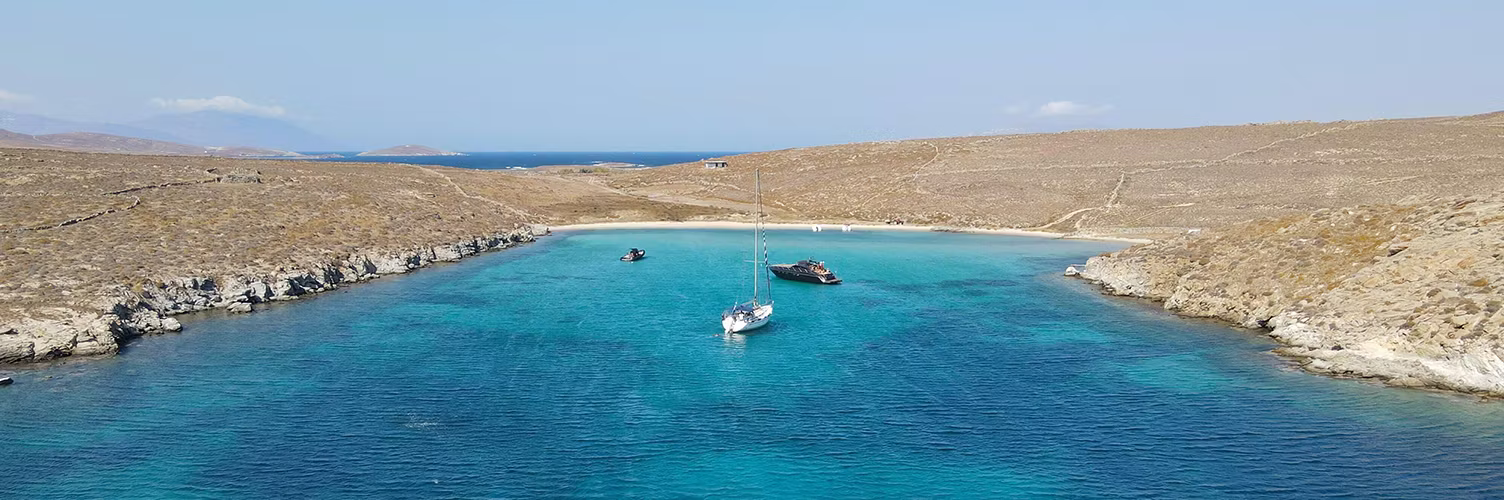 Ornos Bay serves as the perfect anchorage for yachts seeking to explore the idyllic island of Mykonos. Kalo Livadi, Elia beach, Psarrou and Agios Sostis are some of the most breathtaking beaches in the area, with the latter home to Kiki's Taverna, a picturesque restaurant that is definitely worth the wait. Those looking for an all-day celebration should head to Super Paradise for a day of revelry, or to Psarou beach and Nammos Restaurant by the Sea for a delicious lunch that will quickly turn into an afternoon of dancing and partying.
